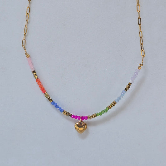 Pulsera dorada con corazón brillante – diseño doble con dije