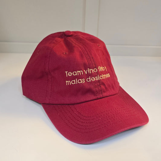 🍷 Gorra vino – “Team vino tinto y malas decisiones”