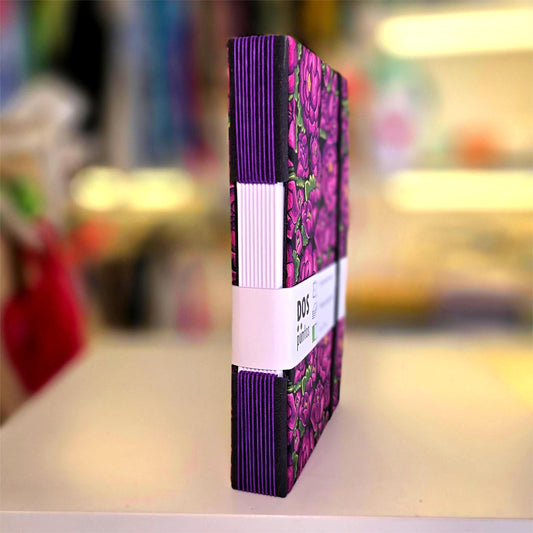 Libreta Pasta Dura Cosida| Flores Moradas | Hojas Blancas
