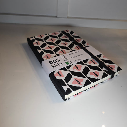 Libreta Pasta Dura de Tela Rombos Rosa Con Negro