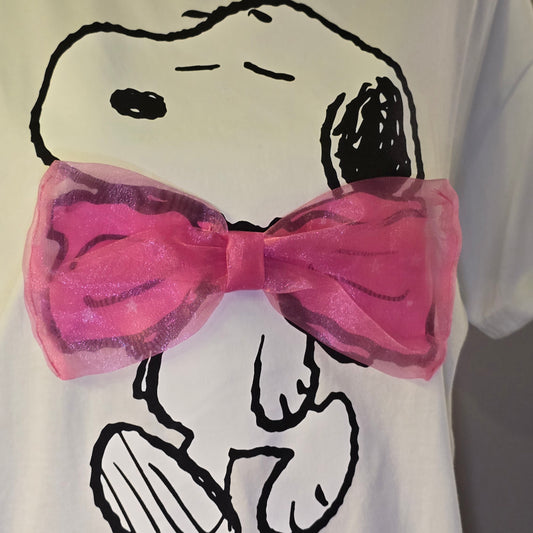 Playera Snoopy Blanca Moño Rosa