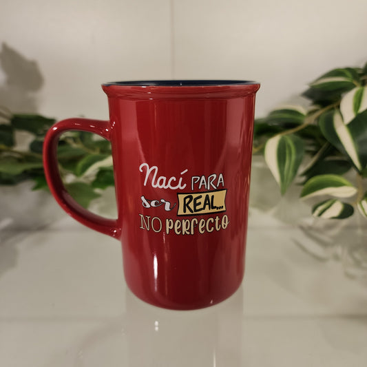 Taza "Naci para ser real, no perfecto"