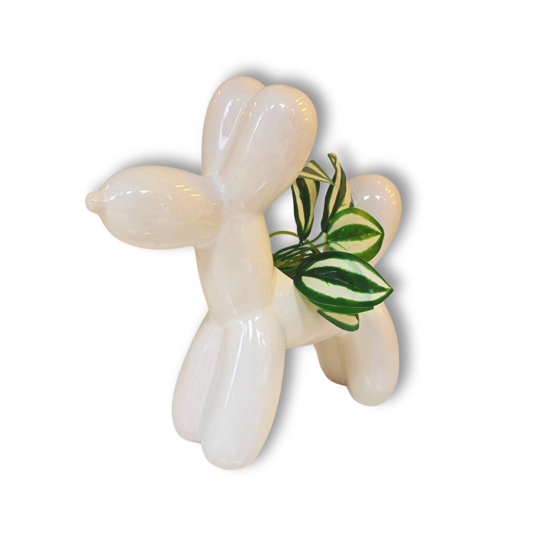 🎈 Maceta Perrito Globo – Blanco Brillante