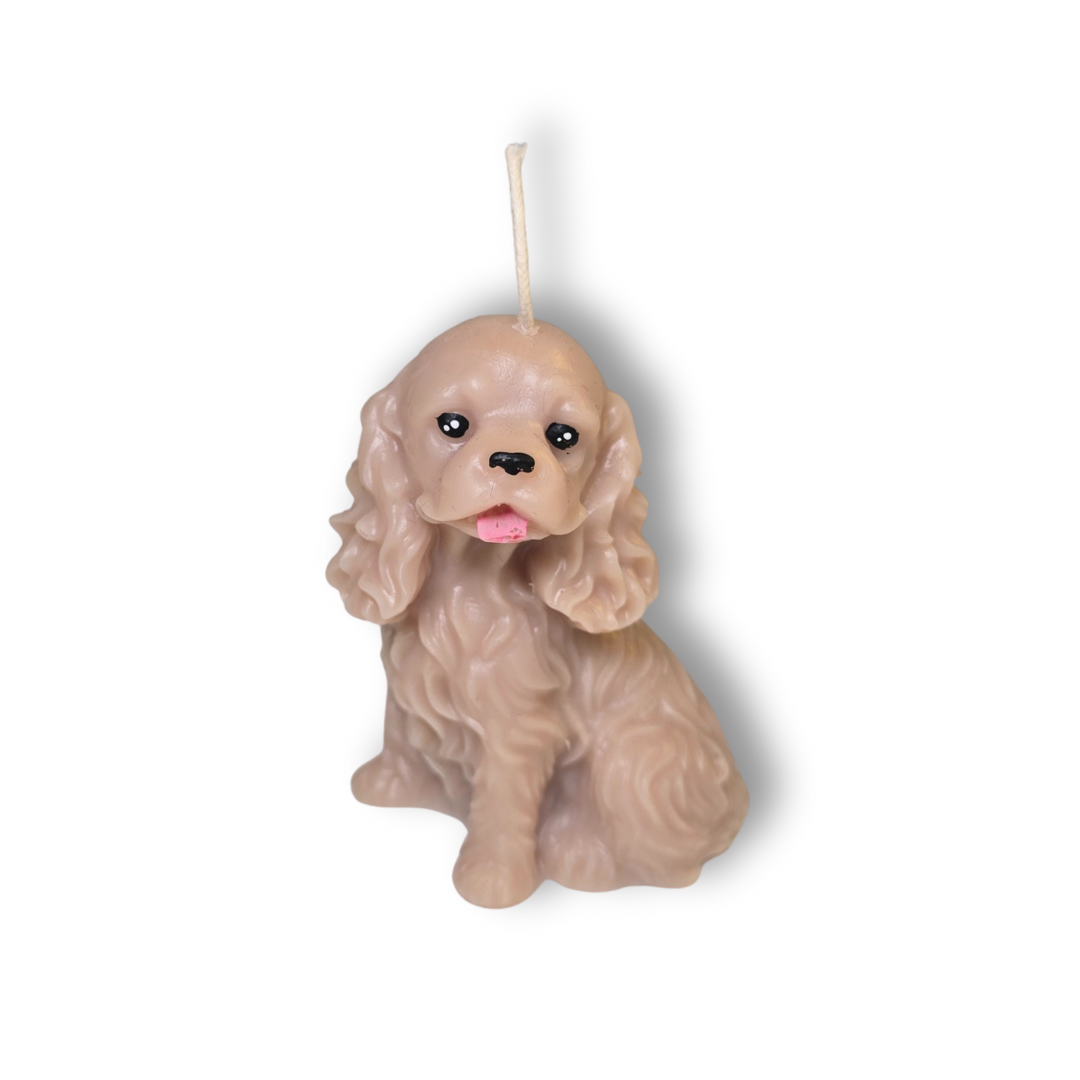 Con orejitas largas, mirada dulce y una lengüita rosa que derrite el corazón, esta vela en forma de perrito está hecha de cera de soya con un suave aroma que acompaña su ternura.