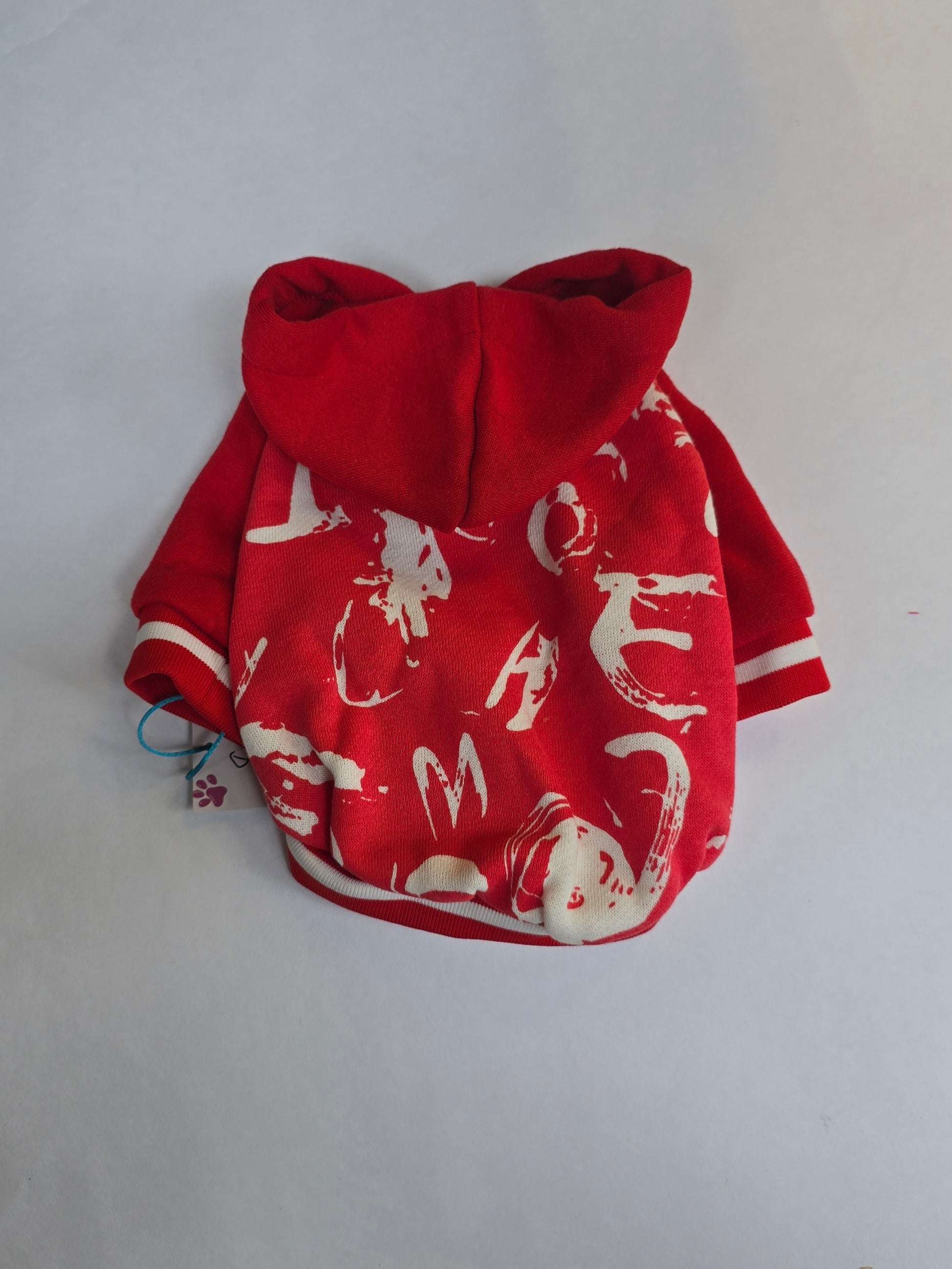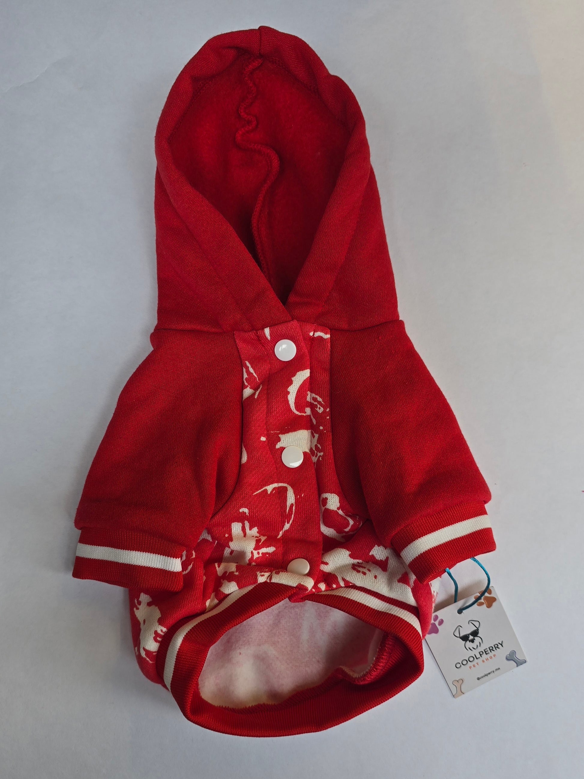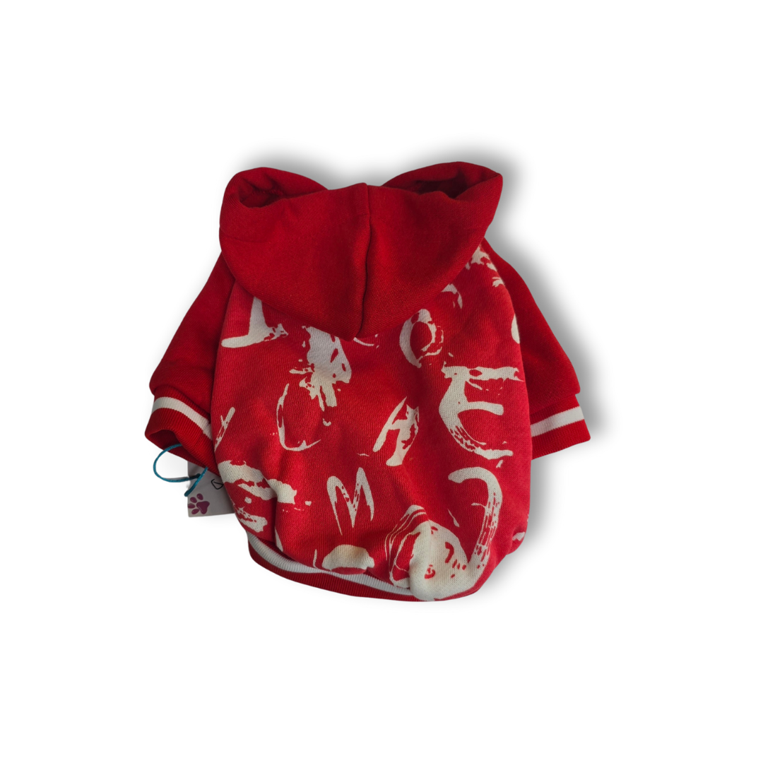 El street style también es para perros. Esta sudadera roja con capucha y estampado blanco tipo grafiti es pura actitud. Con puños en contraste, es perfecta para los lomitos que tienen personalidad de sobra.