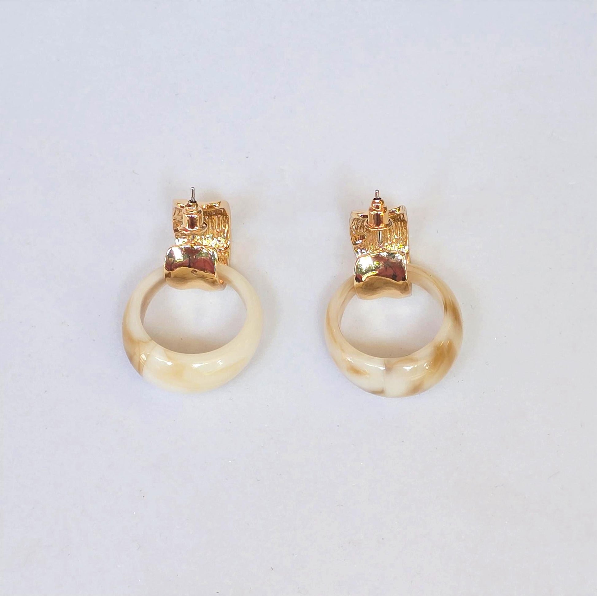 Este diseño 2 en 1 te permite transformarlos según tu estilo del día: úsalos con el aro de resina en tono vainilla marmoleado para un look más vistoso, o llévalos solo con el aro dorado para un acabado minimalista y chic.