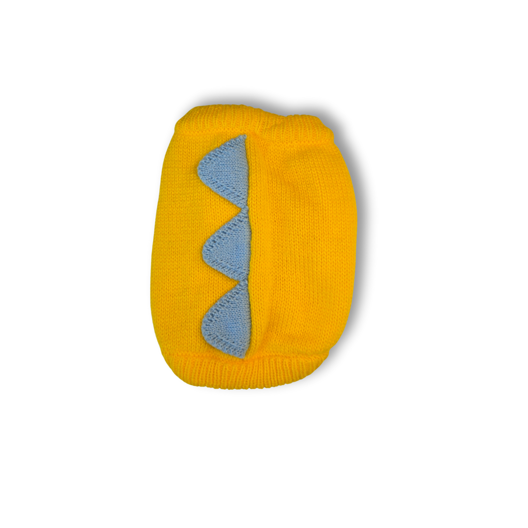 🦖 Suéter amarillo con escamas azules (estilo dinosaurio)