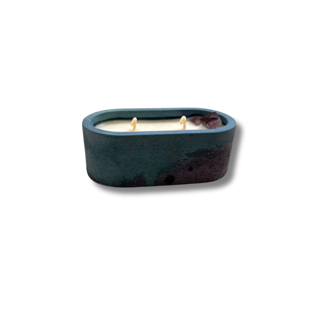 Revitaliza tu espacio con la frescura del romero y la protección de la amatista. Ideal para liberar tensiones y elevar la vibración. Base azul con toques violeta.
